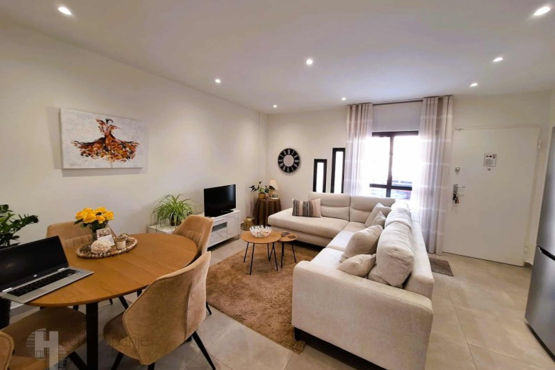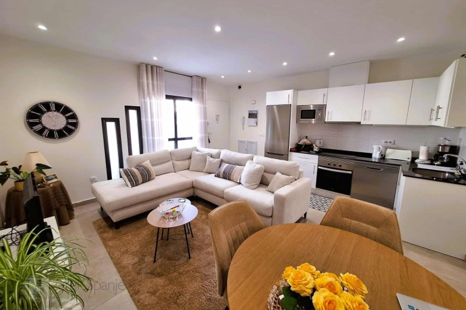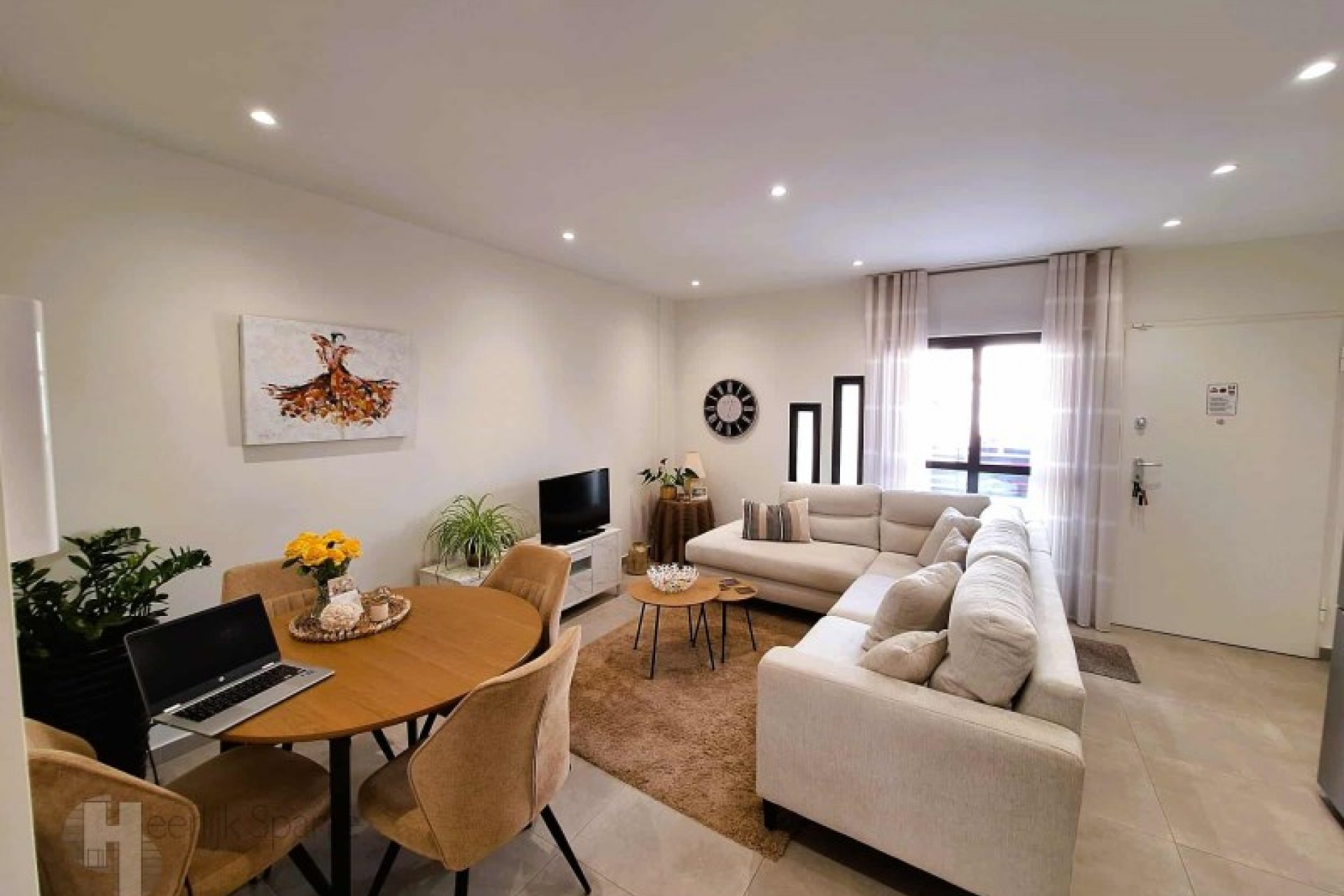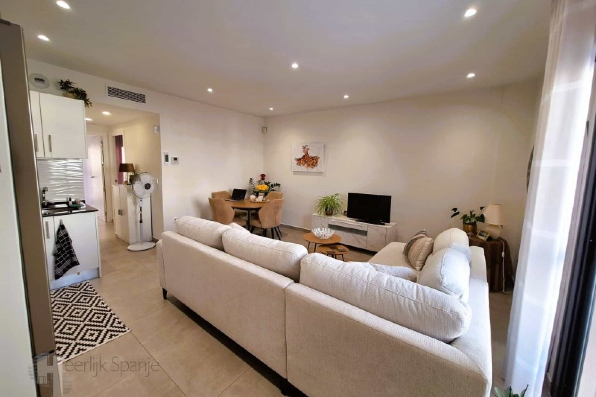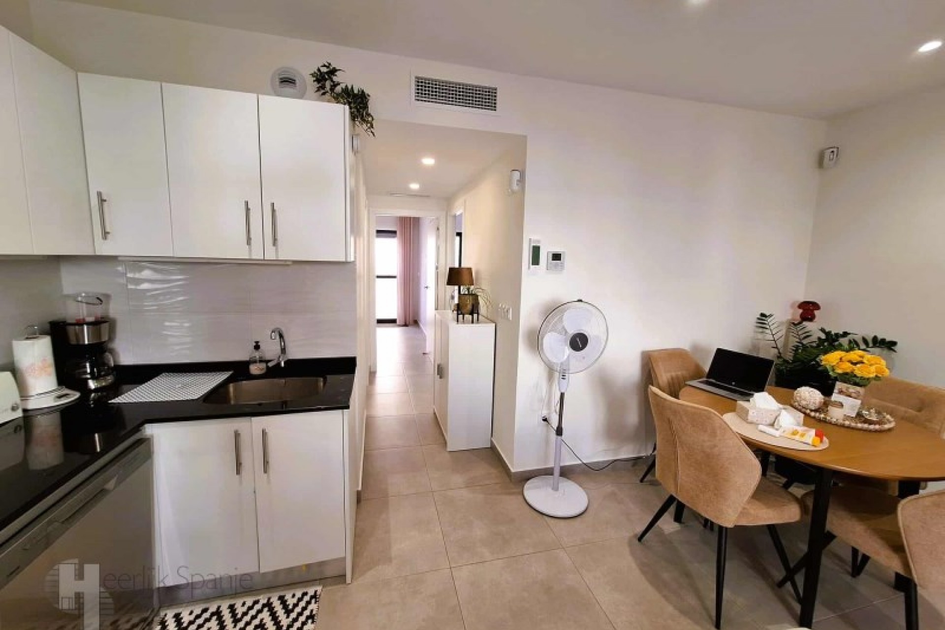 In a quiet residential area of Lo Pagan, is this well-kept ground floor flat with west facing outdoor space and access to a communal swimming pool. It is only 400 metres from the beach and the lively town centre, ideal for those who want to enjoy the Spanish outdoor life. A pleasant place where tranquillity and accessibility go hand in hand. A good place to spend the winter or to rent out - the tourist licence is already in place. INTERIOR: - Constructed area: 95 m² approx. - 2 bedrooms and 2 bathrooms - Open plan living room with kitchen and lots of light - Double glazing, air conditioning included - Newly built in 2020 - low maintenance - Completely on ground floor and ready to move into OUTSIDE: - Private west facing terrace - afternoon sun - Communal garden with swimming pool - Quiet street with parking nearby - All on one level, no stairs FURTHER INFORMATION - Freehold, no debts or restrictions - Common expenses: 60 euros/month - IBI (council tax): approx. 243 euros/year - Long term rent? Possibility of renting at around 930 euros/month ENVIRONMENT: You live here just a few minutes walk from the sea, shops, restaurants and the promenade of Lo Pagan. This charming seaside village is part of San Pedro del Pinatar, in the north of the Costa Calida. The atmosphere is lively but friendly, with local markets, tapas bars and movement all year round, without mass tourism. Lo Pagán is known for its mud baths, the warm lagoon of the Mar Menor and its mild microclimate. Cycle around the salt flats, stroll along the harbour or simply enjoy a sunny terrace. Life here is leisurely and sunny. With Colegio Castelar, there is an international school within walking distance. Murcia airport is a 30 minute drive, Alicante an hour away. A ready to move into house in a quiet area. Ready for personal use or rental. #ref:HS_9