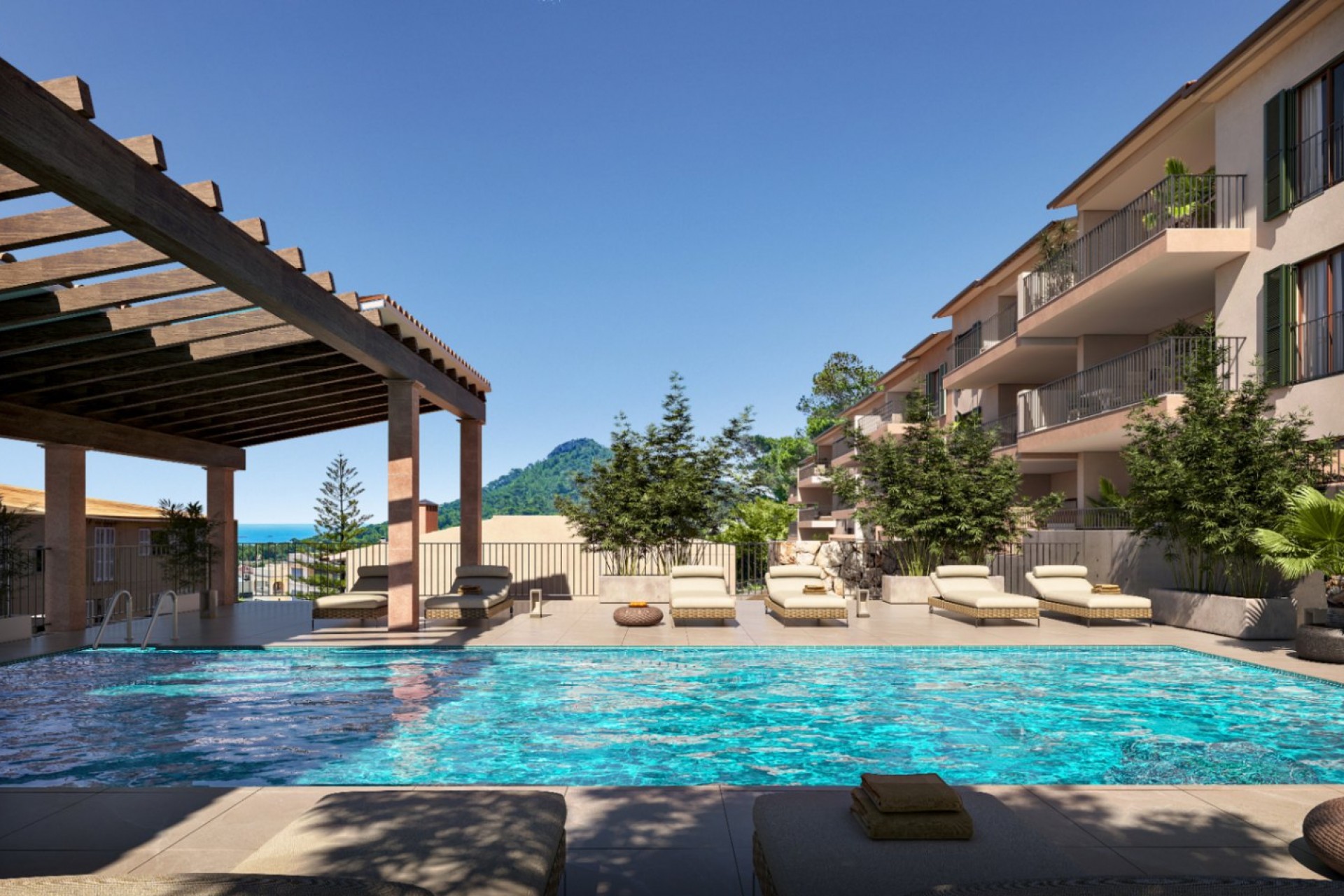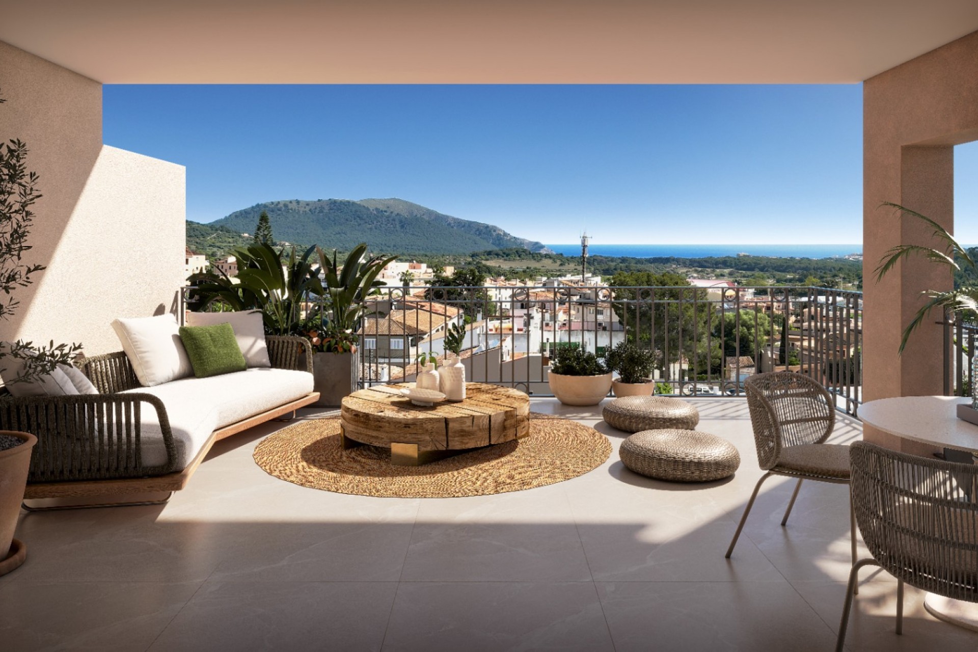 Discover an exclusive residential development in the heart of Capdepera, one of Mallorca’s most charming and authentic towns. Nestled in the island’s northeast, Capdepera retains its traditional Mediterranean character, offering a relaxed lifestyle where local customs and culture thrive. Just minutes from pristine beaches like Son Moll and Cala Agulla, this project combines modern comfort with the natural beauty and historic charm of Mallorca. Contemporary Apartments & TownhousesOliu features 23 modern apartments and 9 stylish townhouses, each with two spacious bedrooms and two full bathrooms, designed for comfort, functionality, and everyday luxury. Apartments: Bright, open-plan living spaces with two double bedrooms and two bathrooms. Some apartments boast panoramic views of the Mediterranean Sea, the eastern coastline, or the historic Capdepera Castle, dating back to the 14th century.Townhouses: Two-bedroom homes with two bathrooms and large outdoor terraces on both the ground and first floors, perfect for entertaining or relaxing with family and friends.Exceptional Communal AmenitiesOliu’s community spaces are crafted for relaxation and enjoyment: A shared swimming pool surrounded by landscaped gardens featuring native Mediterranean plantsOutdoor relaxation areas to soak in the sun and fresh airA secure environment within a traditional Mallorcan setting, close to local gastronomy, shops, and cultural attractionsEach home includes one or two underground parking spaces, adding convenience and security. Expected Handover: November 2027 High-Quality FinishesThis Mallorcan-style development meets European building regulations, providing excellent soundproofing, thermal insulation, and durability. Kitchen Features: Fully fitted with modern appliances by Siemens or equivalentOven, induction hob, extractor fan, integrated refrigerator, and dishwasherBathroom Features: Suspended wooden vanity units by KyryaFlush shower trays with recessed taps and Tres fixturesFlooring: Large-format ceramic tiles by Saloni throughout the interiorsNon-slip versions on terraces for safety and eleganceWhy Choose Capdepera? Perfect for families, holiday homeowners, or investors, this project offers a rare combination of authentic Mallorcan charm, modern design, and prime coastal location. Enjoy the tranquility of a traditional town while remaining just minutes from some of Mallorca’s most beautiful beaches and vibrant local life.