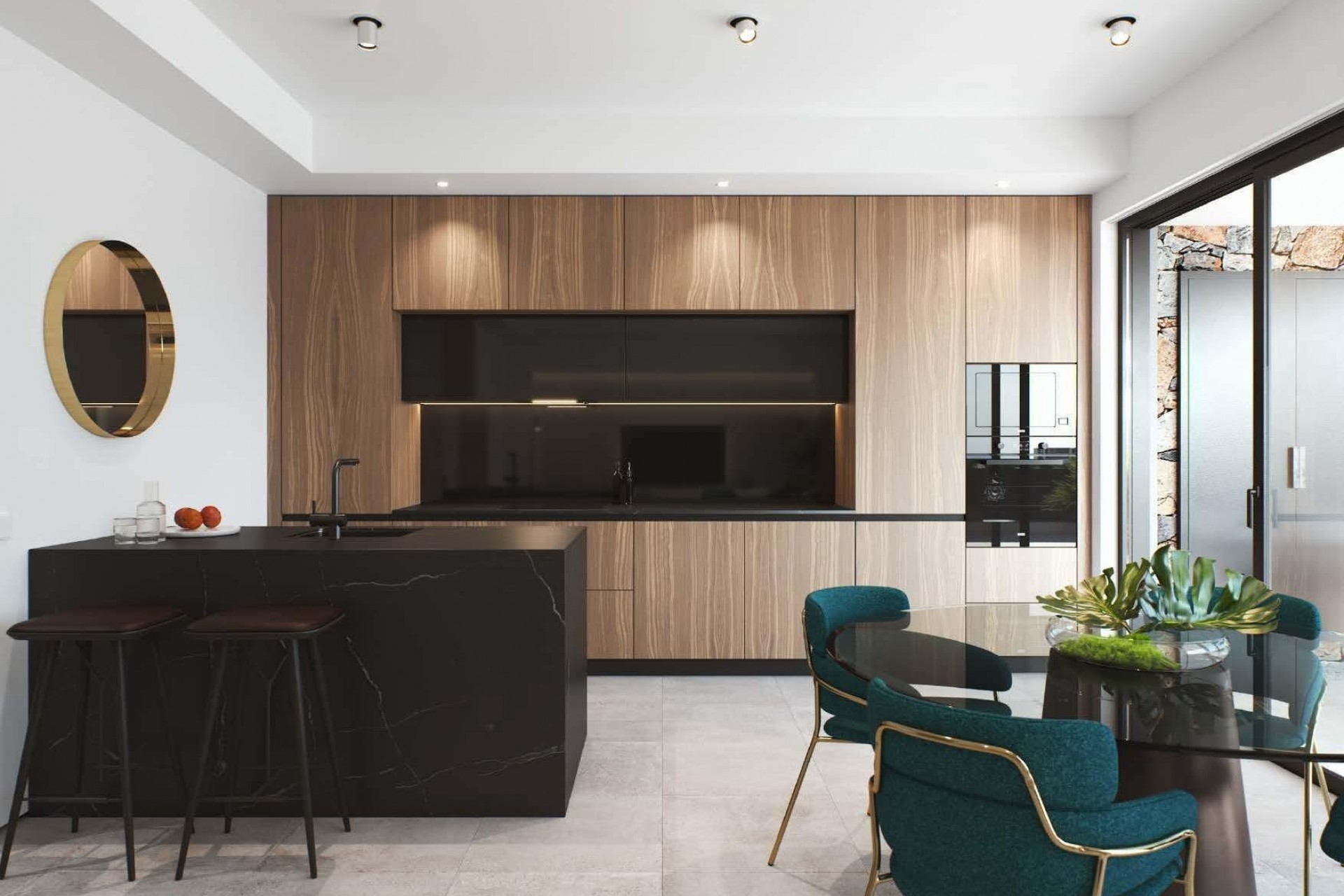 Open-plan living-dining area and fully fitted kitchen
