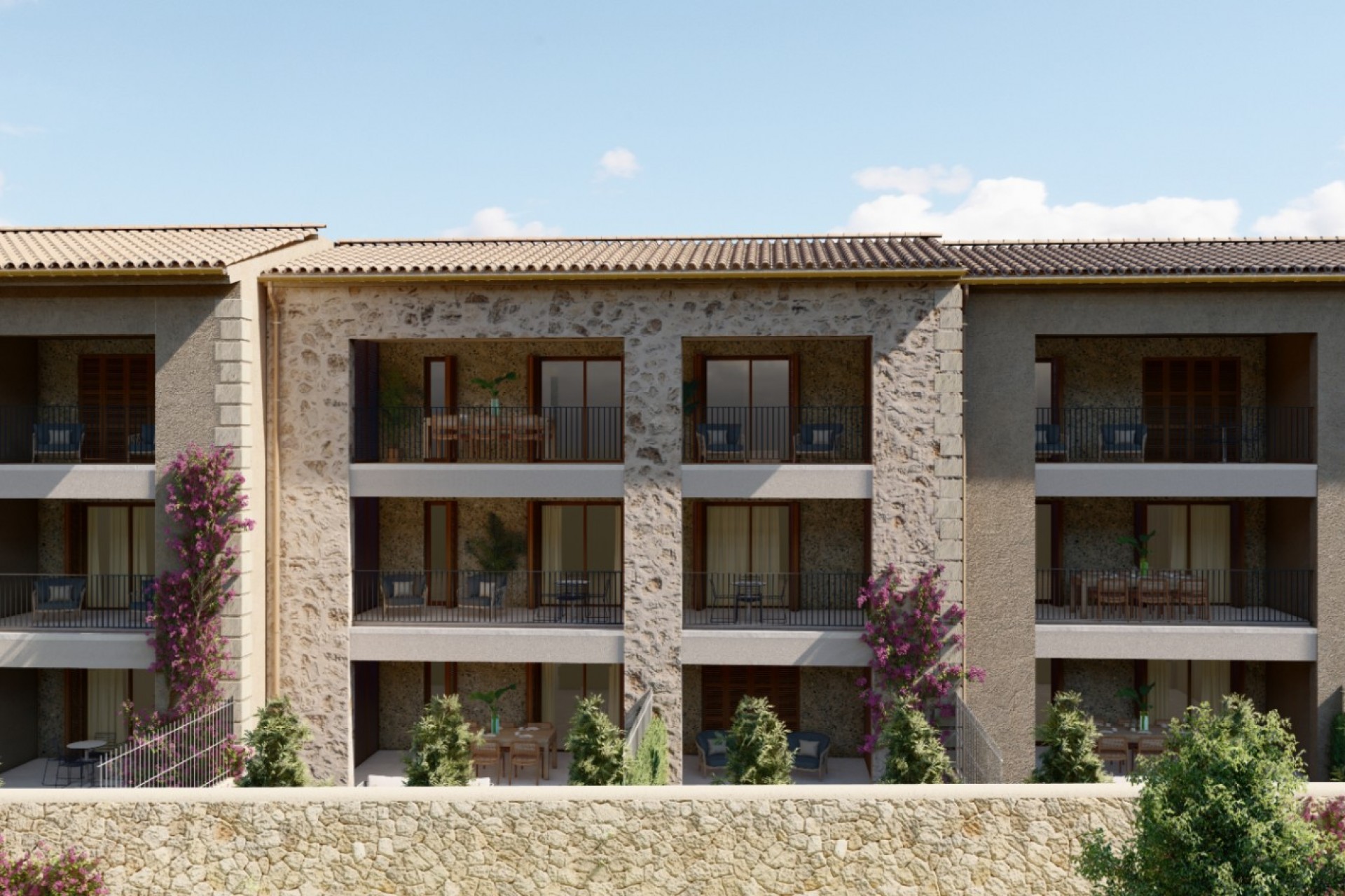 Cj Real Estate présente ce beau projet à Bunyola, situé dans les montagnes de Tramuntana. Le projet se compose de 36 appartements avec un garage, un débarras et une piscine commune, répartis comme suit : 7 appartements de deux chambres avec porche et jardin 5 appartements de trois chambres avec porche et jardin 7 appartements de deux chambres avec porche 5 appartements de trois chambres avec porche 7 appartements de deux chambres avec porche et solarium 5 appartements de trois chambres avec porche et solarium Le design est traditionnel, avec des finitions de luxe, des pierres naturelles, une grande habitabilité et un grand confort. Votre maison sera située dans un centre urbain consolidé, bien équipé et connecté à Bunyola. Bunyola est l’une des plus grandes municipalités de l’île de Majorque et est située dans les montagnes de Tramuntana, elle est donc entourée de plusieurs points de grand intérêt culturel et paysager. Vous serez relié au reste de l'île par les autoroutes Ma-2020, Ma-2120 et Ma-11. Vous trouverez également plusieurs lignes de bus : la 205, qui vous reliera à Palma de Majorque, et la 221, qui vous reliera à Orient. Le train qui relie Sóller à la capitale s’arrête également à la gare de Bunyola.