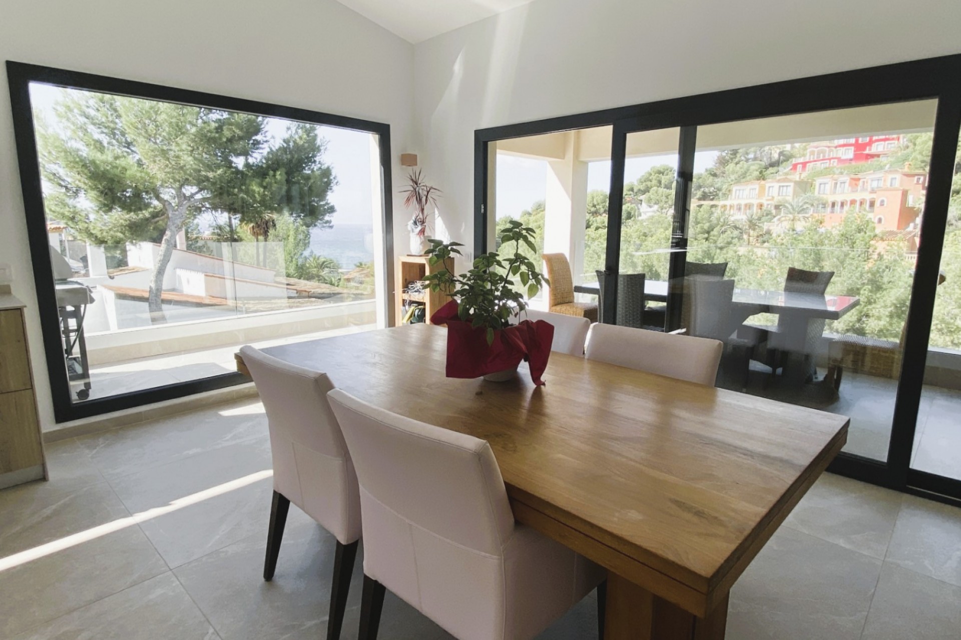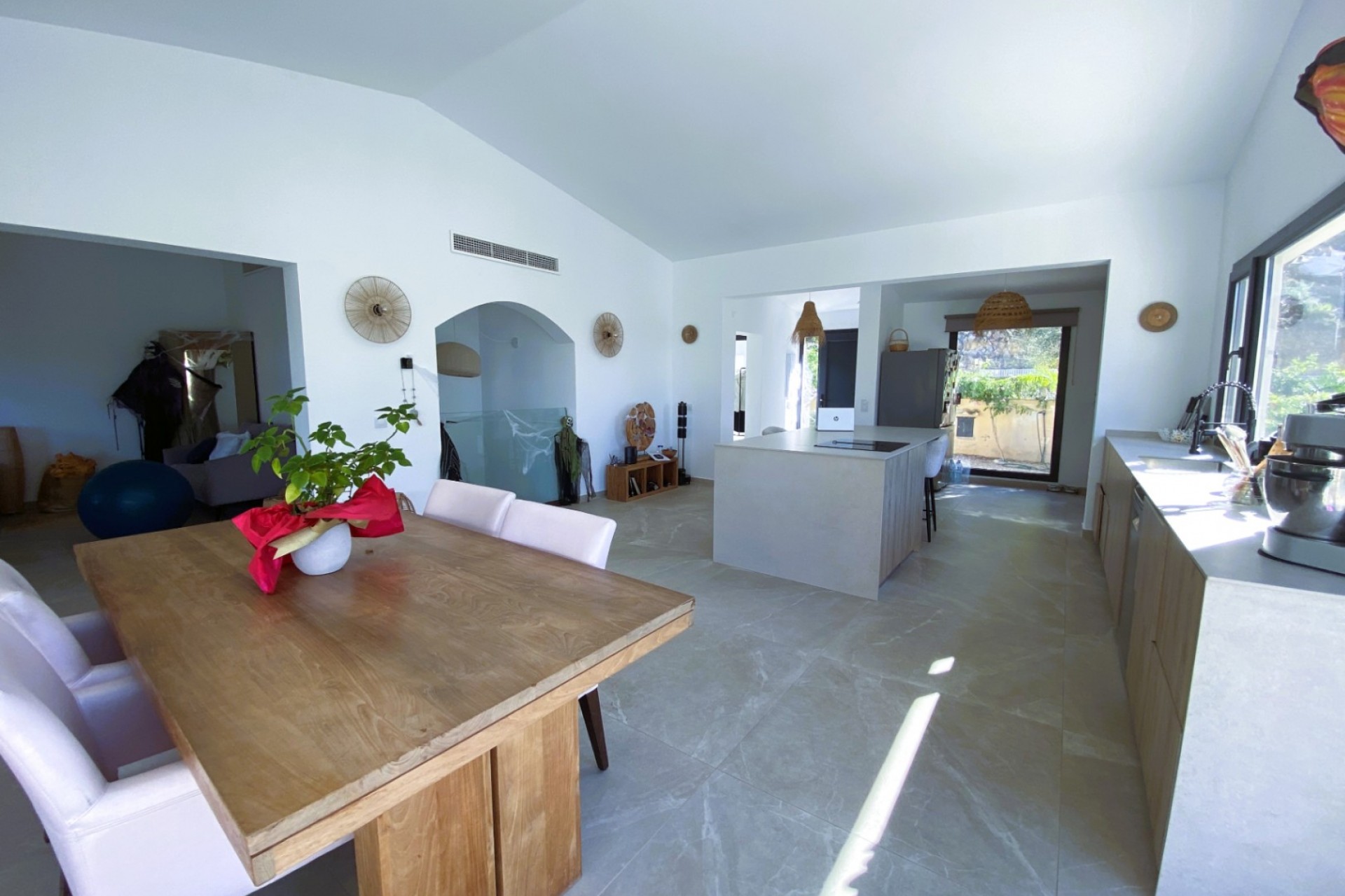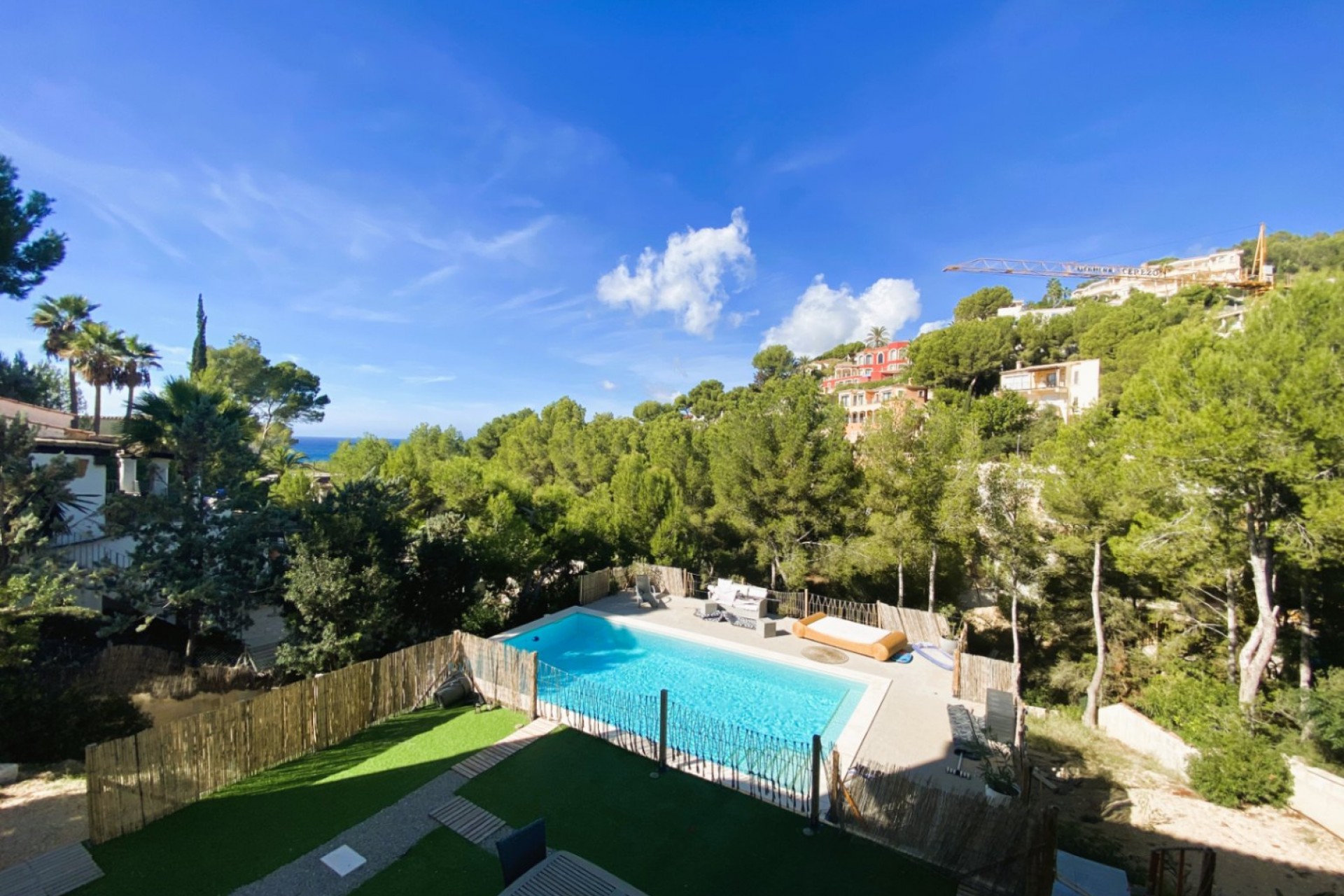 Cette élégante villa moderne à Costa de la Calma a été entièrement rénovée en 2022 et est située à un emplacement élevé, offrant une vue magnifique sur la mer. Entourée d'un jardin bien entretenu, d'arbres fruitiers matures, et avec un accès direct à la mer, c'est le refuge parfait pour vivre toute l'année ou pour des vacances. L'entrée de la maison se trouve au rez-de-chaussée, menant à un salon et une salle à manger ouverts et lumineux avec une cuisine intégrée. Depuis le salon, vous accédez à une grande terrasse offrant une vue panoramique imprenable sur la mer. À l'étage, vous trouverez trois chambres, chacune avec sa propre salle de bain attenante. La chambre principale dispose d'un spacieux dressing, d'une grande salle de bain avec vue sur la mer, et d'un bureau attenant. Deux autres chambres bénéficient également de vues panoramiques sur la mer. À l'arrière de la maison se trouve un espace piscine spacieux, idéal pour se détendre ou recevoir, avec un espace pour le jardinage, les barbecues, et d'autres activités de plein air. À côté de la piscine se trouve un appartement pour les invités entièrement équipé avec cuisine. La propriété comprend également un grand garage, deux débarras, et un toilette pour les invités. Située à seulement une minute à pied de la plage, cette villa est une escapade parfaite. Costa de la Calma est une zone paisible dans la municipalité de Calvià, au sud-ouest de Majorque. Elle est connue pour ses marinas, ses terrains de golf, ses écoles internationales, ses belles baies, et son excellente infrastructure. Palma est à 20 minutes en voiture, et l'aéroport à seulement 25 minutes. Avertissement : Certaines informations contenues dans ce document proviennent d'informations fournies par des propriétaires / collaborateurs. Toutes les informations fournies sont considérées comme fiables, mais ne sont pas garanties d'être exactes et doivent être vérifiées indépendamment.