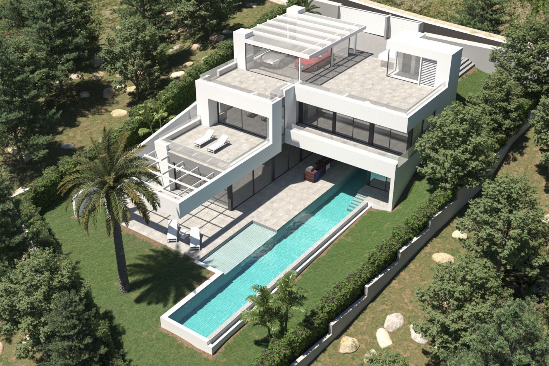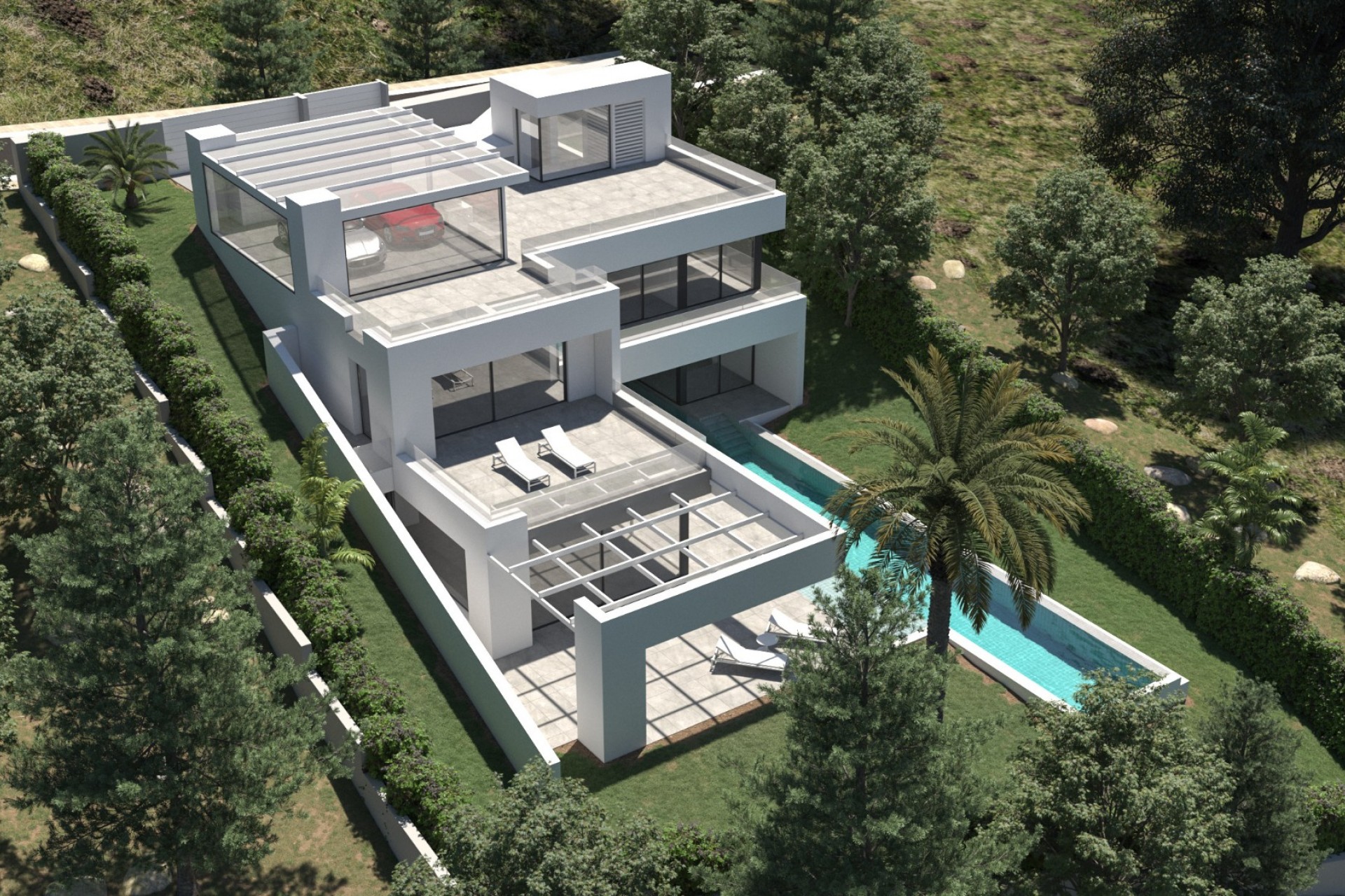 Le summum de l'art de vivre méditerranéen moderne Nichée au cœur des collines verdoyantes de Son Vida, le domaine privé le plus prestigieux de la Méditerranée, cette résidence visionnaire est un modèle d'architecture contemporaine et de design intelligent. Entamant sa phase finale de construction, cette propriété offre une opportunité rare d'acquérir un chef-d'œuvre « clé en main » dans un environnement paisible et déjà établi, à l'abri des nuisances liées à d'éventuels travaux. Design harmonieux et technologies intelligentes D'une superficie totale de 498 m², la villa a été conçue pour le connaisseur moderne. L'accès se fait par un système d'entrée discret par empreinte digitale, vous ouvrant les portes d'un écosystème domotique entièrement intégré. Chaque détail, de la climatisation au chauffage au sol en passant par l'éclairage d'ambiance, est géré avec une précision naturelle. Le cœur de la maison est un espace de vie décloisonné spectaculaire qui abolit les frontières entre intérieur et extérieur. Une élégante cuisine Siematic, équipée d'appareils Gaggenau haut de gamme, constitue le lieu de vie principal, donnant sur une vaste terrasse et une magnifique piscine de 25 mètres. Havres de paix et bien-être sur mesure L'étage supérieur est dédié au repos et au raffinement. La suite parentale est un havre de paix privé comprenant un vaste dressing et une salle de bains attenante digne d'un spa. Trois autres chambres doubles, chacune dotée d'une salle de bains privative sur mesure, garantissent une intimité absolue pour la famille et les invités. Descendez à l'étage inférieur pour découvrir un espace polyvalent conçu pour le bien-être ou les loisirs. Aménagé en salle de sport privée, en home cinéma ou en salon high-tech, cet espace est baigné d'une lumière douce grâce à une fenêtre architecturale unique faisant office de « fenêtre de piscine ». Une cave à vin climatisée apporte la touche finale de sophistication pour les collectionneurs avertis. Durabilité et élégance extérieure Témoignant d'un engagement pour l'avenir, la villa dispose d'un garage double surmonté d'une pergola intégrant des panneaux solaires. Le terrain de 1 009 m² est paysagé avec soin, agrémenté d'une flore méditerranéenne et d'un système d'irrigation automatisé, créant ainsi une oasis luxuriante et intime qui demande un minimum d'entretien. Le style de vie Son Vida Surnommé le « Beverly Hills de Majorque », Son Vida offre un cadre de vie incomparable. Les résidents bénéficient d'une sécurité 24h/24 et de la proximité de trois parcours de golf de renommée internationale : Son Vida, Son Muntaner et Son Quint. Accessibilité : À 10 minutes du centre historique de Palma et des boutiques de luxe de Jaime III. Loisirs : À 10 minutes des eaux turquoise d'Illetes et de clubs de plage huppés. Éducation : À proximité immédiate d'établissements scolaires internationaux prestigieux.