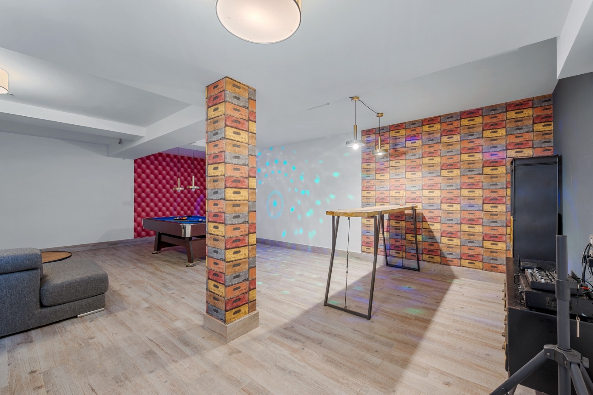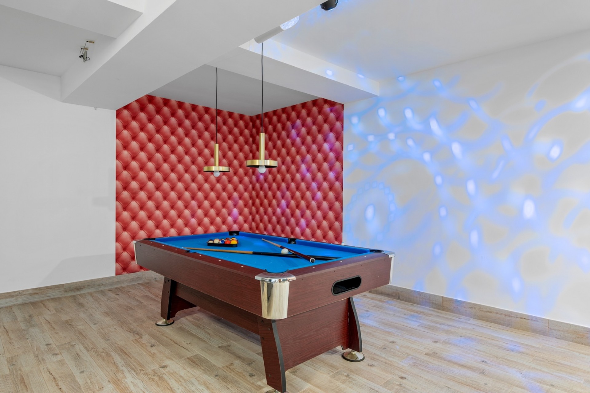 Le sous-sol est aménagé en salle de loisirs avec un espace billard et offre un espace supplémentaire pour différents usages.