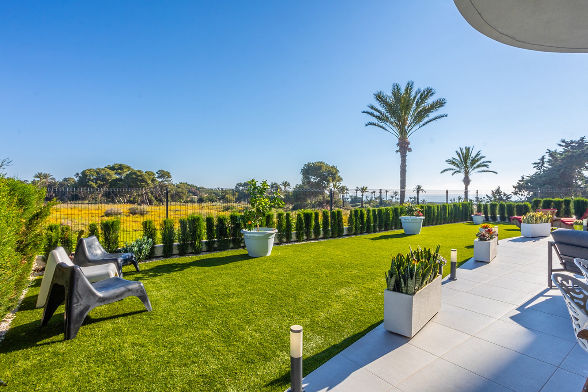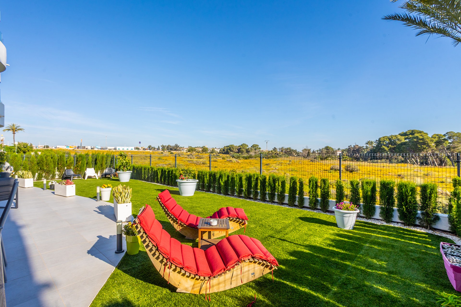 Cet appartement du complexe Ocean Dream se distingue par sa fonctionnalité et son emplacement stratégique, à seulement 200 mètres de la plage de Punta Prima. Avec 84 m² de surface, la propriété est distribuée en deux chambres et deux salles de bains complètes. Son principal atout est le vaste espace extérieur privatif : une terrasse reliée à un jardin de 95 m², conservant des vues dégagées inhabituelles sur la mer depuis le rez-de-chaussée.
