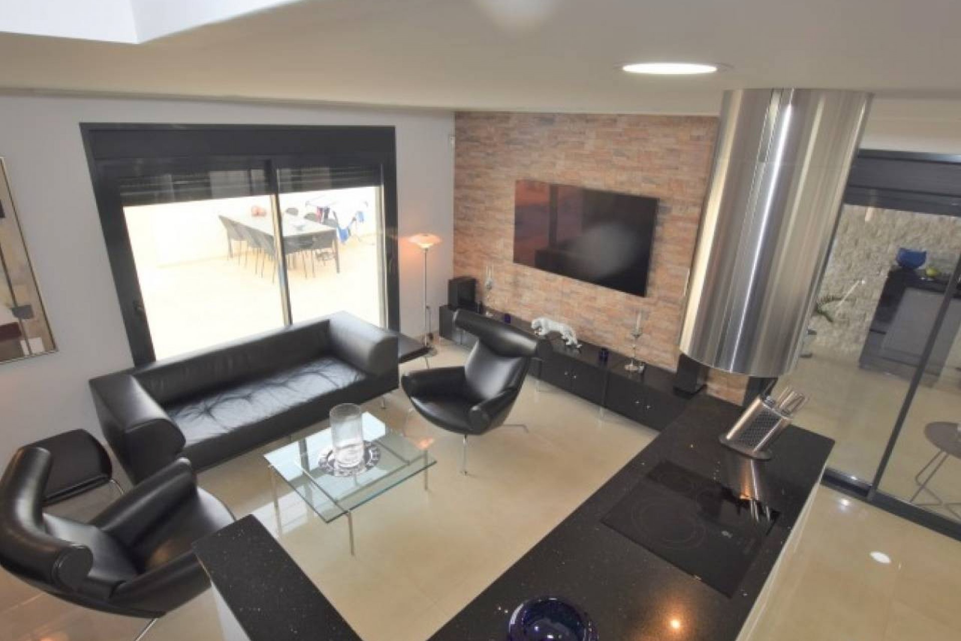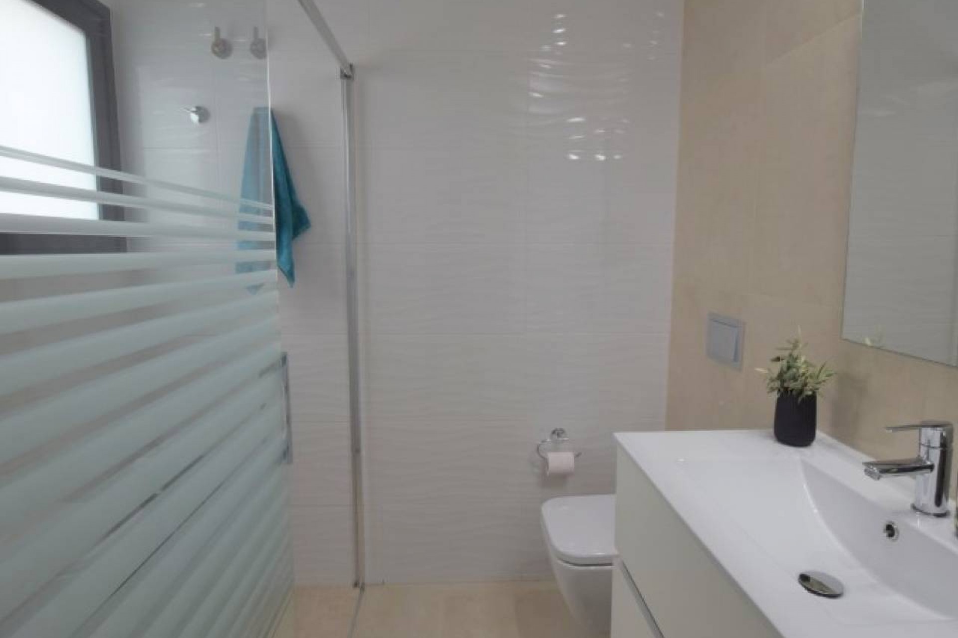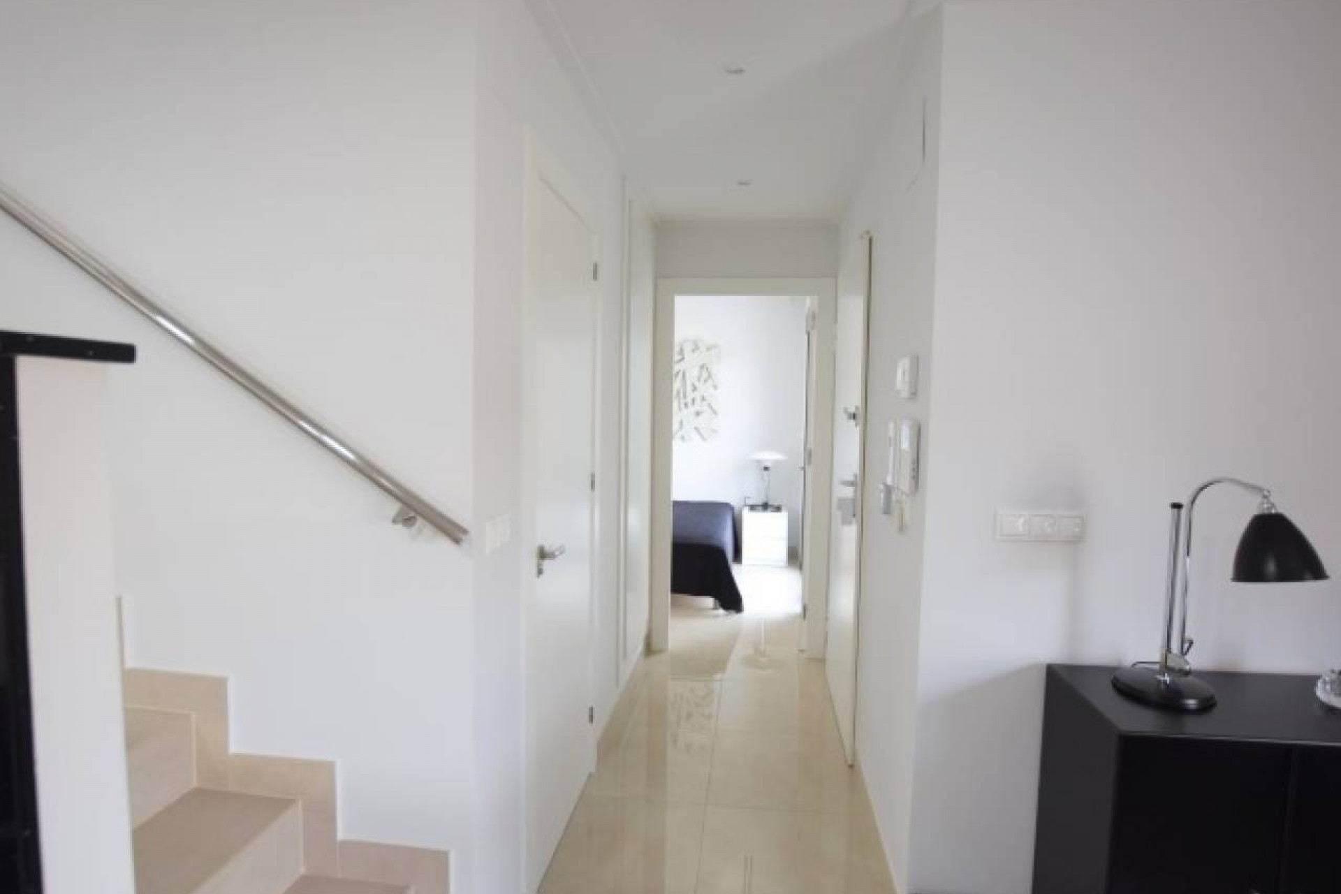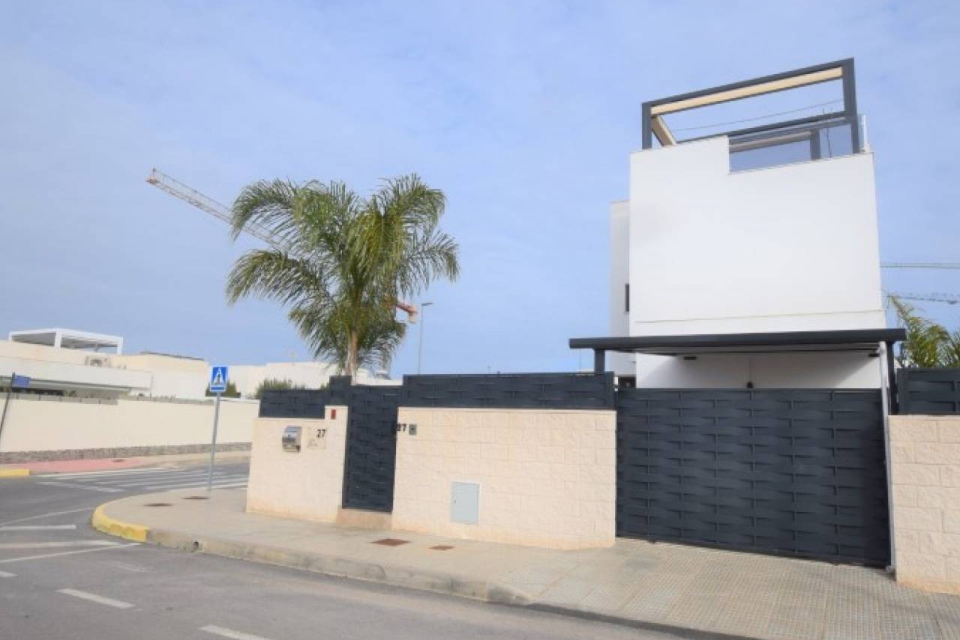La propriété propose un hébergement spacieux de 3 chambres et 2 salles de bains, conçu et construit avec toutes les caractéristiques attrayantes de la nouvelle construction. Cette grande villa est répartie sur deux étages. Au rez-de-chaussée se trouve un grand salon avec un plan ouvert, une grande cuisine joliment équipée, avec des portes-fenêtres menant à la terrasse de la piscine à l'avant et un autre ensemble ouvrant sur une salle à manger vitrée séparée, également avec des portes sur la terrasse de la piscine. Il y a une chambre double et une salle de bain attenante au rez-de-chaussée avec un éclairage tamisé et des armoires encastrées. Il y a un vestiaire sous l'escalier menant au premier étage.