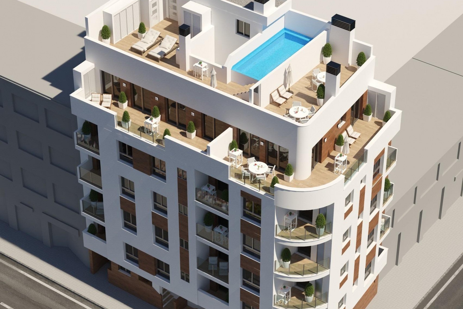 NIEUWBOUW APPARTEMENTEN IN TORREVIEJA Nieuwbouw appartementen en penthouses in Torrevieja. Nieuwbouw residentieel van 17 exclusieve 1 en 2 slaapkamers, 1 en 2 badkamers appartementen en penthouses, met open keuken en woonkamer, grote, ingebouwde kasten, volledig uitgeruste badkamers met vloerverwarming. Alle gemotoriseerde aluminium jaloezieën. Gepantserde toegangsdeur met veiligheidsslot. Pre-installatie van airconditioning en verwarming. Nieuwbouw wooncomplex met modern design en hoogwaardige afwerking heeft een prachtig gemeenschappelijk solarium met zwembad. Torrevieja is een Spaanse stad in de provincie Alicante, aan de Costa Blanca. Het staat bekend om zijn typisch mediterrane klimaat en kustlijn. Het heeft promenades met resorts langs de zandstranden. Het kleine Museum van de Zee en het Zout herbergt tentoonstellingen over de visserij- en zoutgeschiedenis van de stad. In het binnenland heeft het natuurpark Lagunas de La Mata-Torrevieja paden en twee zoute lagunes, een roze en de andere groen. De luchthaven van Alicante ligt op 40 minuten afstand en die van Murcia op ongeveer 1 uur.