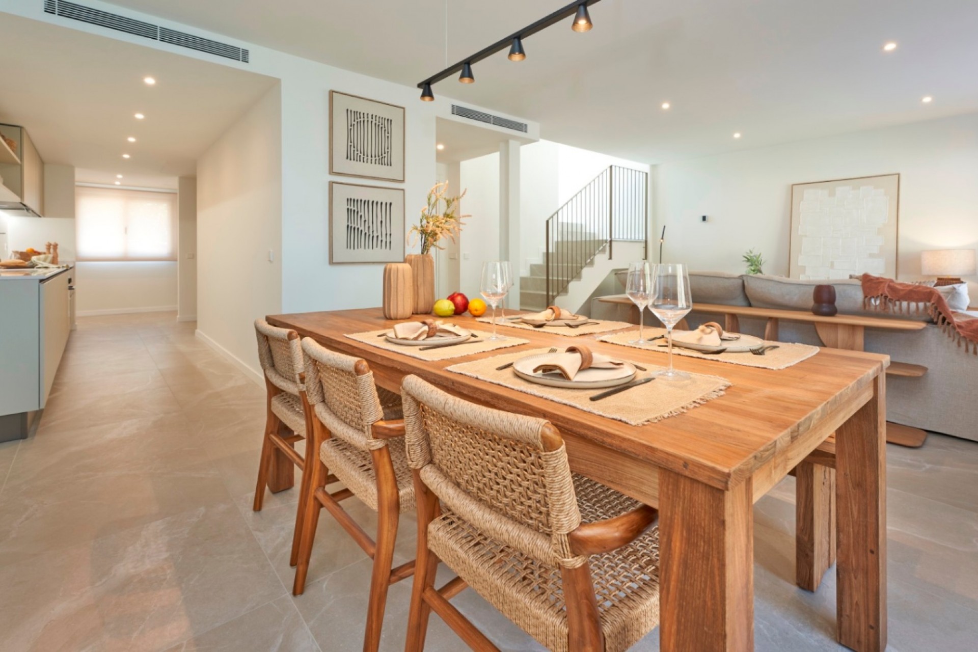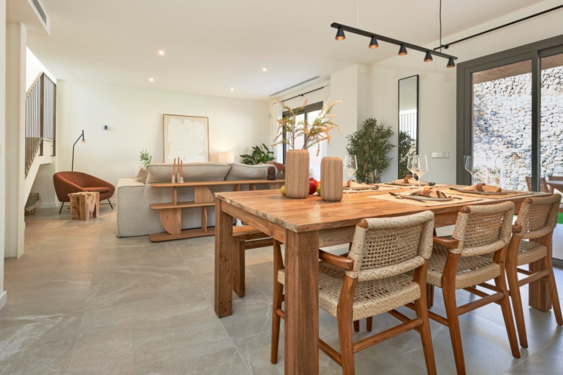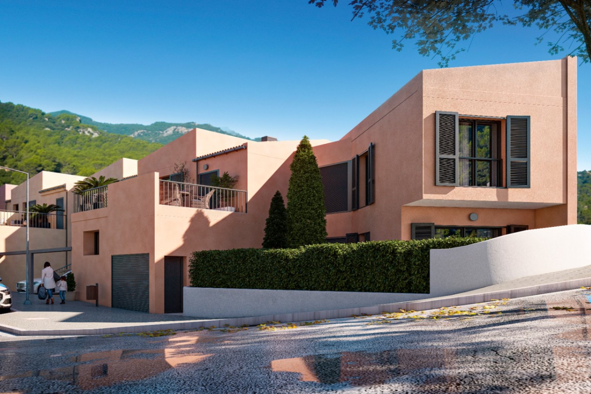 Wij presenteren deze prachtige nieuwe ontwikkeling van geschakelde woningen in Esporles, een charmant stadje in het hart van Mallorca. Prijzen van 795.000 tot 865.000 € / 3 woningen over Deze nieuwe ontwikkeling van 13 geschakelde woningen van 150m2, met 3 slaapkamers en 2 badkamers (waarvan één en-suite) en een gastentoilet, beschikt over een ruime woon-eetkamer die open is naar de grote en zonnige achtertuin met toegang tot het gemeenschappelijke zwembad en de tuinen. Op de tweede verdieping vinden we 3 ruime slaapkamers met en-suite badkamers en een groot terras van 33m2 op het zuidwesten. Dit project is afgewerkt in de traditionele Mallorcaanse stijl en wordt gebouwd volgens strikte Europese kwaliteitsnormen en het hoogste niveau van geluidsisolatie en thermische isolatie tussen de woningen. De keuken is gemeubileerd en uitgerust met apparatuur van topkwaliteit, waaronder een oven, inductiekookplaat en afzuigkap. De badkamer beschikt over een douche op de begane grond en ingebouwde kranen. Het hele huis is uitgerust met vloerverwarming. Buiten parkeren en voorbereiding voor elektrische voertuigen.