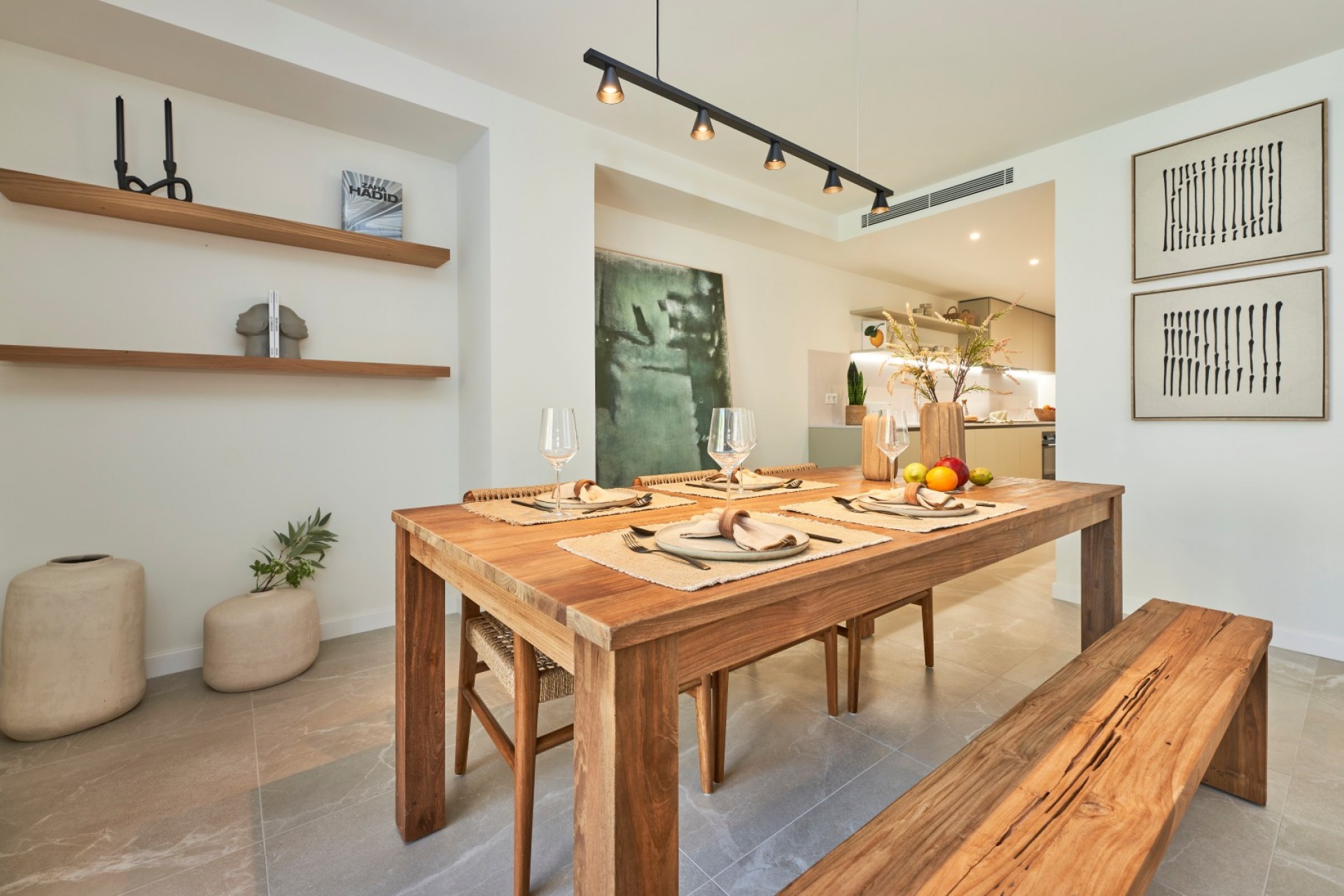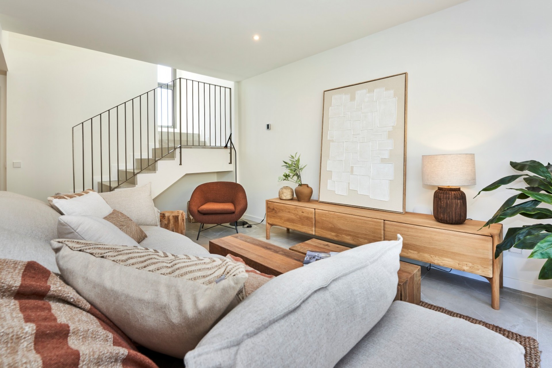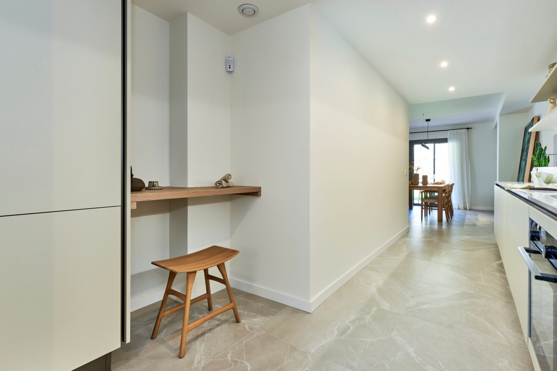 Wij presenteren deze prachtige nieuwe ontwikkeling van geschakelde woningen in Esporles, een charmant stadje in het hart van Mallorca. Prijzen van 795.000 tot 865.000 € / 3 woningen over Deze nieuwe ontwikkeling van 13 geschakelde woningen van 150m2, met 3 slaapkamers en 2 badkamers (waarvan één en-suite) en een gastentoilet, beschikt over een ruime woon-eetkamer die open is naar de grote en zonnige achtertuin met toegang tot het gemeenschappelijke zwembad en de tuinen. Op de tweede verdieping vinden we 3 ruime slaapkamers met en-suite badkamers en een groot terras van 33m2 op het zuidwesten. Dit project is afgewerkt in de traditionele Mallorcaanse stijl en wordt gebouwd volgens strikte Europese kwaliteitsnormen en het hoogste niveau van geluidsisolatie en thermische isolatie tussen de woningen. De keuken is gemeubileerd en uitgerust met apparatuur van topkwaliteit, waaronder een oven, inductiekookplaat en afzuigkap. De badkamer beschikt over een douche op de begane grond en ingebouwde kranen. Het hele huis is uitgerust met vloerverwarming. Buiten parkeren en voorbereiding voor elektrische voertuigen.