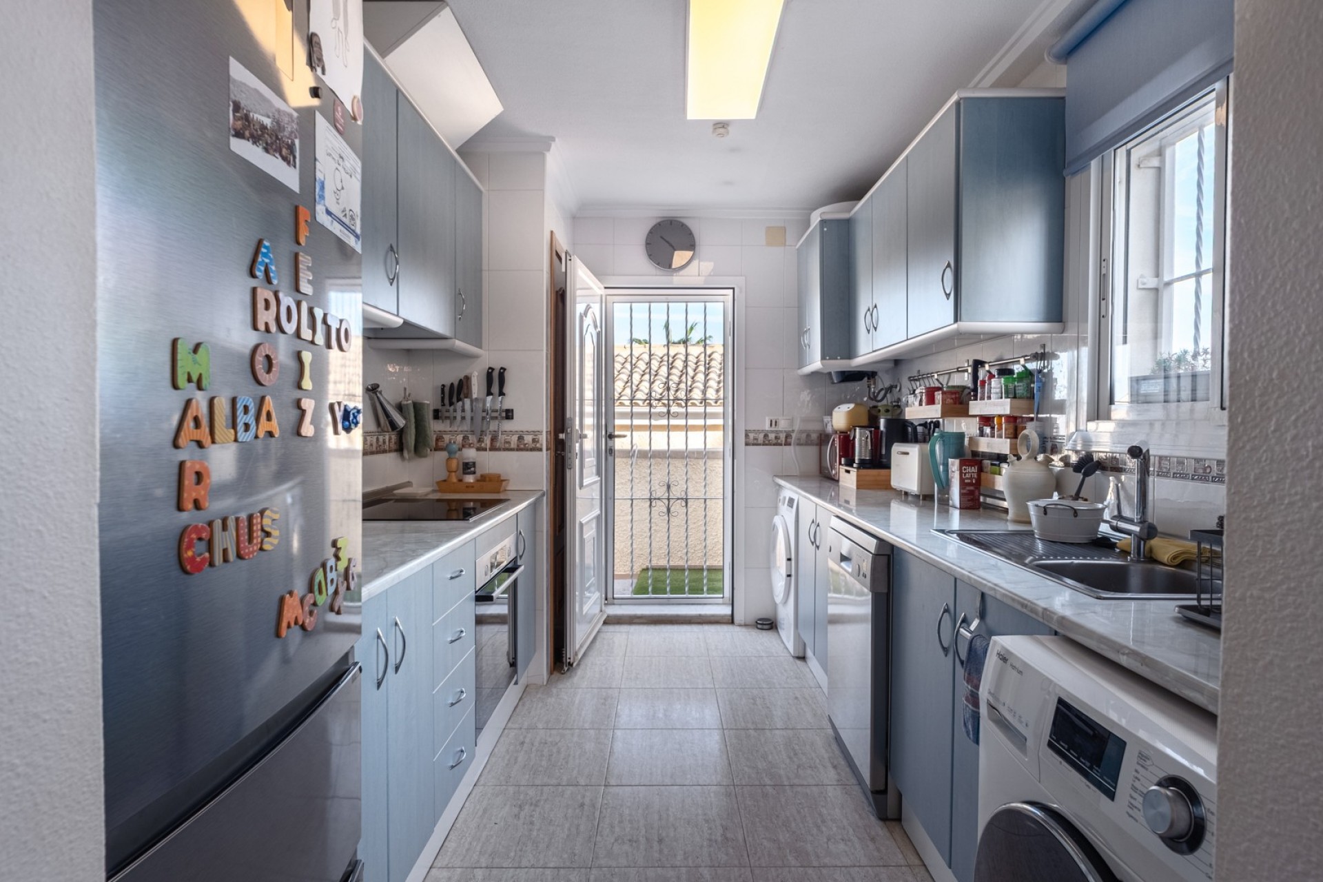 Welkom bij deze prachtige woning in Gran Alacant (Santa Pola), een zeer gewilde woonlocatie vanwege haar rust, familievriendelijke sfeer en nabijheid van de zee. Slechts 2-3 km van de stranden en minder dan 10 minuten van de luchthaven Alicante-Elche, biedt dit huis de perfecte mix van comfort, zelfstandigheid en authentieke mediterrane levensstijl. Gevestigd op een privé perceel van 380 m², biedt deze villa 262 m² woonoppervlak verdeeld over drie niveaus, waarbij ruimte, privacy en functionaliteit elkaar versterken. Kelder met eigen ingang: Een zelfstandige unit met 3 slaapkamers, 1 badkamer en een complete keuken – ideaal voor gastenverblijf, verhuur of autonoom wonen.Begane grond: Het hart van het huis met 2 slaapkamers, 2 badkamers, een volledig uitgeruste keuken en een lichte woonkamer met directe toegang tot de tuin en het zwembad.Bovenverdieping: Een charmante master suite met en-suite badkamer en toegang tot een 40 m² solarium, perfect om te genieten van de mediterrane zon en het open uitzicht. De woning verkeert in uitstekende staat, zorgvuldig onderhouden en voorzien van duurzame upgrades. Voorzien van airconditioning, zonnepanelen, open haard, buitendouche en ruimte voor 2-3 auto’s op het perceel. Dankzij deze verbeteringen heeft het pand een energieklasse B, een zeldzaam kenmerk in de regio dat comfort en energiebesparing garandeert gedurende het hele jaar. De locatie behoort tot de meest praktische en gewilde zones van de Costa Blanca: rustig wonen met uitstekende verbindingen. Slechts 10 km van golfbaan El Plantío, 2-3 km van de stranden van Arenales del Sol en Carabassí en in de nabijheid van supermarkten, restaurants, internationale scholen en openbaar vervoer. Ideaal voor zowel privé gebruik als investering, door de veelzijdige indeling en het hoge potentieel van de woning.