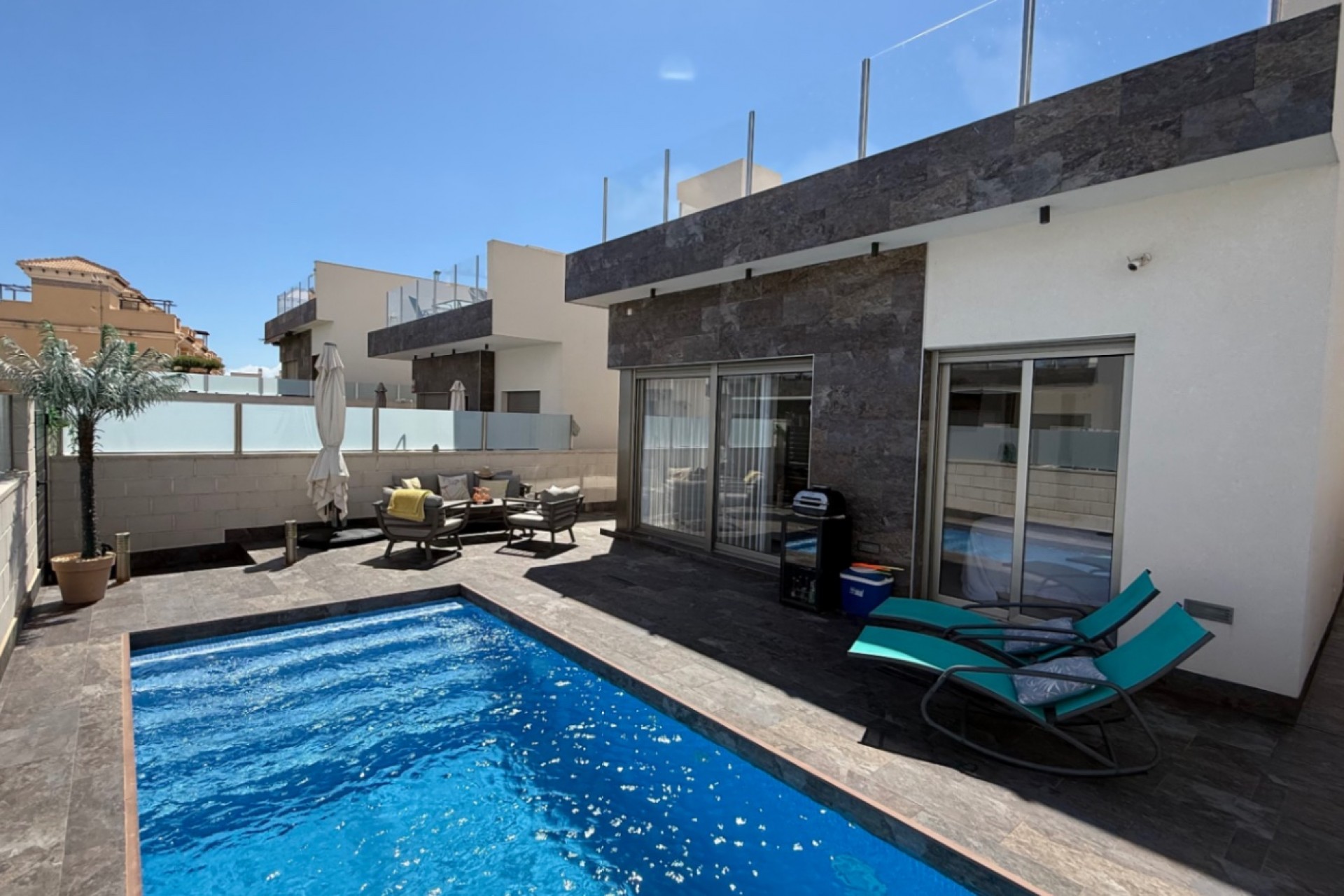 Welkom in uw droomhuis in een rustige en prachtig onderhouden woonwijk. Deze elegante villa heeft 3 lichte slaapkamers, 2 badkamers en ruime buitenruimtes die perfect zijn voor het hele jaar door leven in de Middellandse Zee.Wanneer u door het pand loopt, wordt u verwelkomd door een privétuin en zwembad, ideaal om te ontspannen en te entertainen. Binnen opent de moderne keuken naar een ruime woonkamer met directe toegang tot een overdekt terras — wat de perfecte binnen-buiten flow creëert.Op de bovenverdieping leidt de master suite naar een zonovergoten solarium terras, met prachtige uitzichten en volledige privacy. Het huis is instapklaar, met hoogwaardige afwerkingen, inbouwkasten en airconditioning door het hele huis.Gelegen dichtbij lokale voorzieningen, restaurants en op slechts een korte rit van het strand, is dit pand perfect als permanente woning, vakantiehuis of investeringskans.